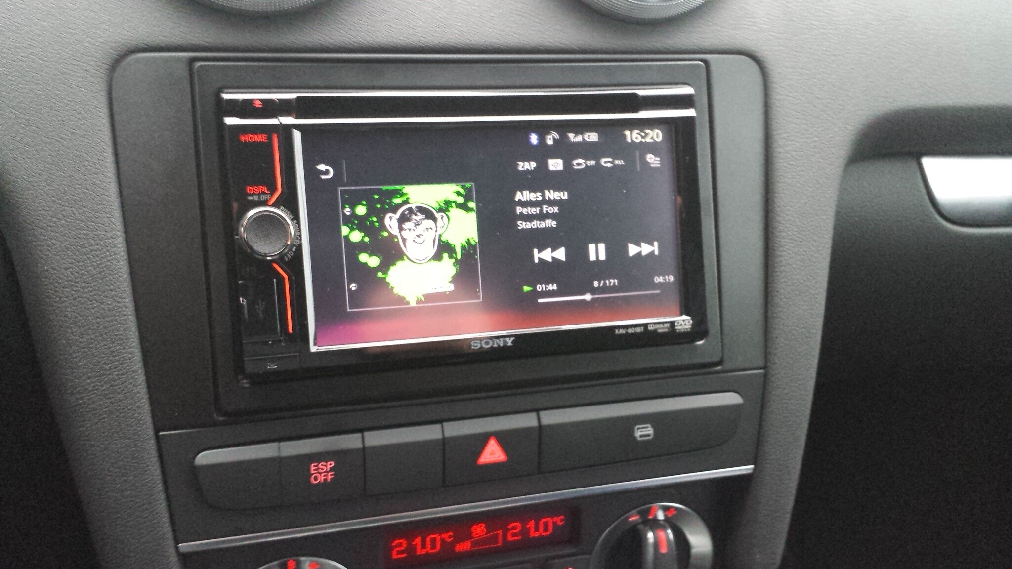 Also ich habe das Sony XAV nun seit ein paar Monaten und bin vollauf zufrieden. Es passt auch sehr gut ins Interieur des A3, weil du die Beleuchtung in alle Farben ändern kannst. Und das rot ist genau das der Innenausstattung.