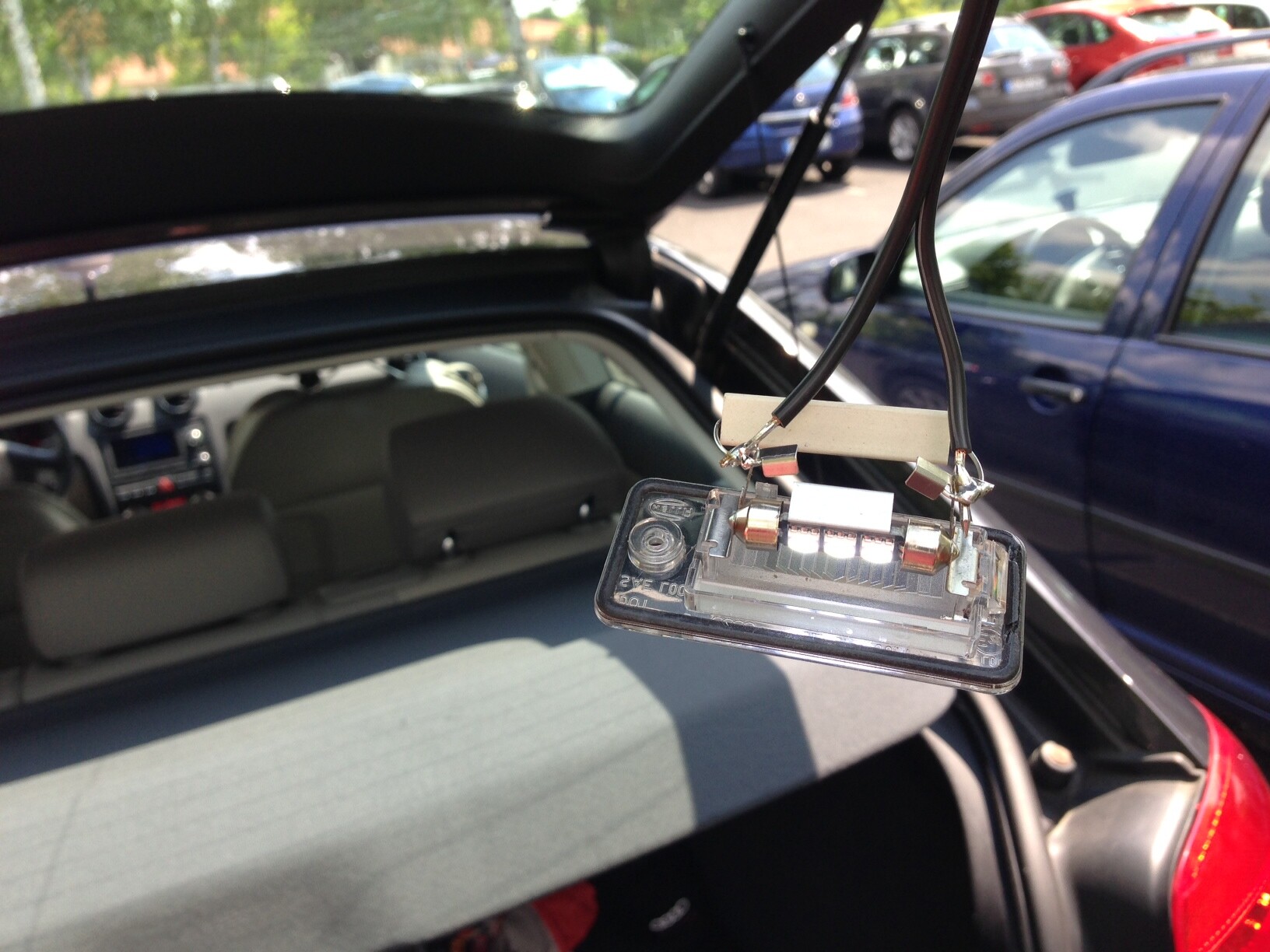 Wer bisher zu seiner RNS-E eine RFK wie ich eingebaut hatte – RFK und Kennzeichenleuchte (KZL) in einer Einheit – der musste wohl ebenso wie ich feststellen, dass das Fahrzeug keine SMD-KZL (weißes Licht) akzeptiert.