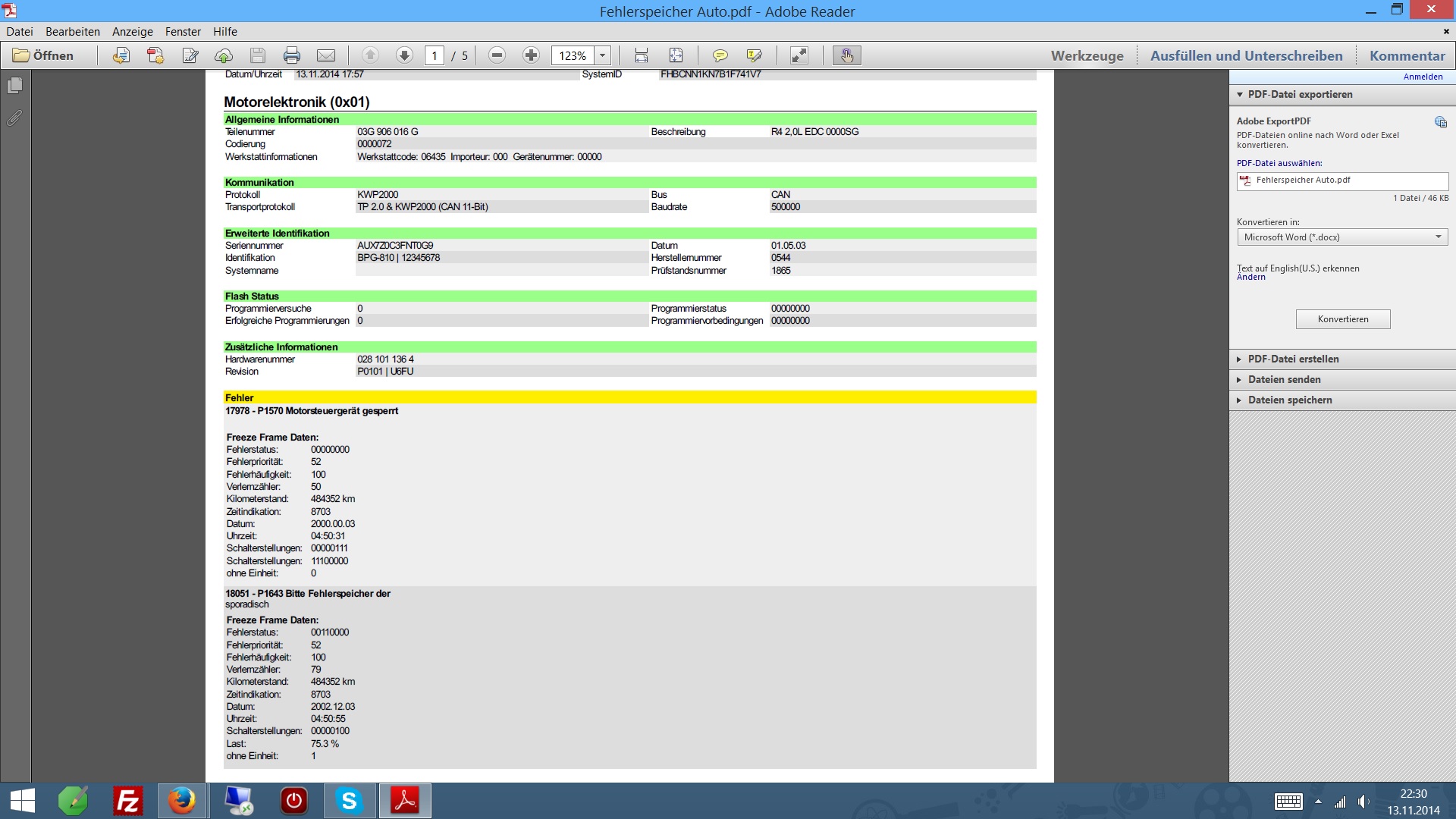 Heute wars soweit und ich habe meinen Fehlerspeicher ausgelesen.
