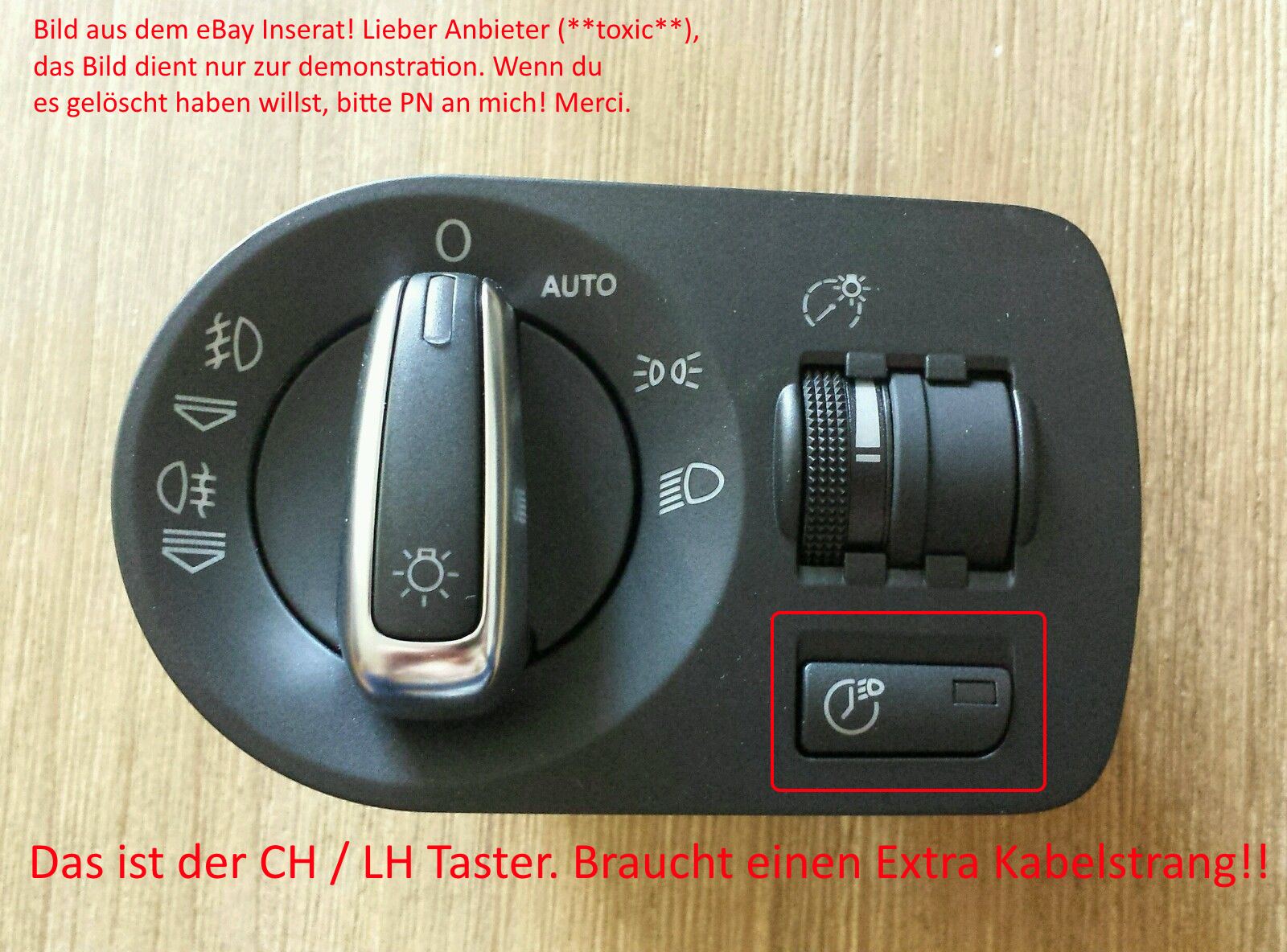Theoretisch müsste der passen aber zu dem Thema gibts nun wirklich genüüügend Threads, nicht nur hier sondern überall im Netz. Einfach mal deine Verkablung am Lichtschalter auf die des Angebotenen Prüfen. Die Anschlüsse sind aber eig immer gleich. Aber ich denke mal kaum das du Coming Home / Leaving Home hast, oder um es besser auszudrücken, der Button den ich im Bild unten Rot eingekreist habe wird zu 100% kein gegenstück also keinen Kabelstrang haben der zu deinem Bordnetzsteuergerät führt. Somit kannst du also abgesehen von dem Button den Rest des Lichtschalters ohne Bedenken nutzen! Habe mir auch so einen Lichtschalter (neu von Audi) gekauft und habe mir einen eigenen Kabelbaum gemacht den ich zum Bordnetzsteuergerät verlegt habe um dort mein CH / LH auszuschalten. Ich glaube ab MJ11 ist dies aber nur noch hauptsächlich über das FIS steuerbar (???) Ich kann dir so ein Kabel gerne auch bauen (Materialkosten musst du zahlen dann) müsstest aber im Forum nachfragen welche Pins an deinem Bordnetzsteuergerät dafür tätig sind. Ich weis leider nur die Verpinnung bis zu den Modelljahren 2004-2009. Das Kabel wäre dann Plug n Play an dem Lichtschalter, müsstest aber dann ggf. Kabel neu verpinnen ins Bordnetzsteuergerät oder an vorhandene Kabel einfach drann löten, oder mit Stromdieben (bitte nur zum testen die Stromdiebe nutzen, nicht langzeitig! Pfusch alarm!)