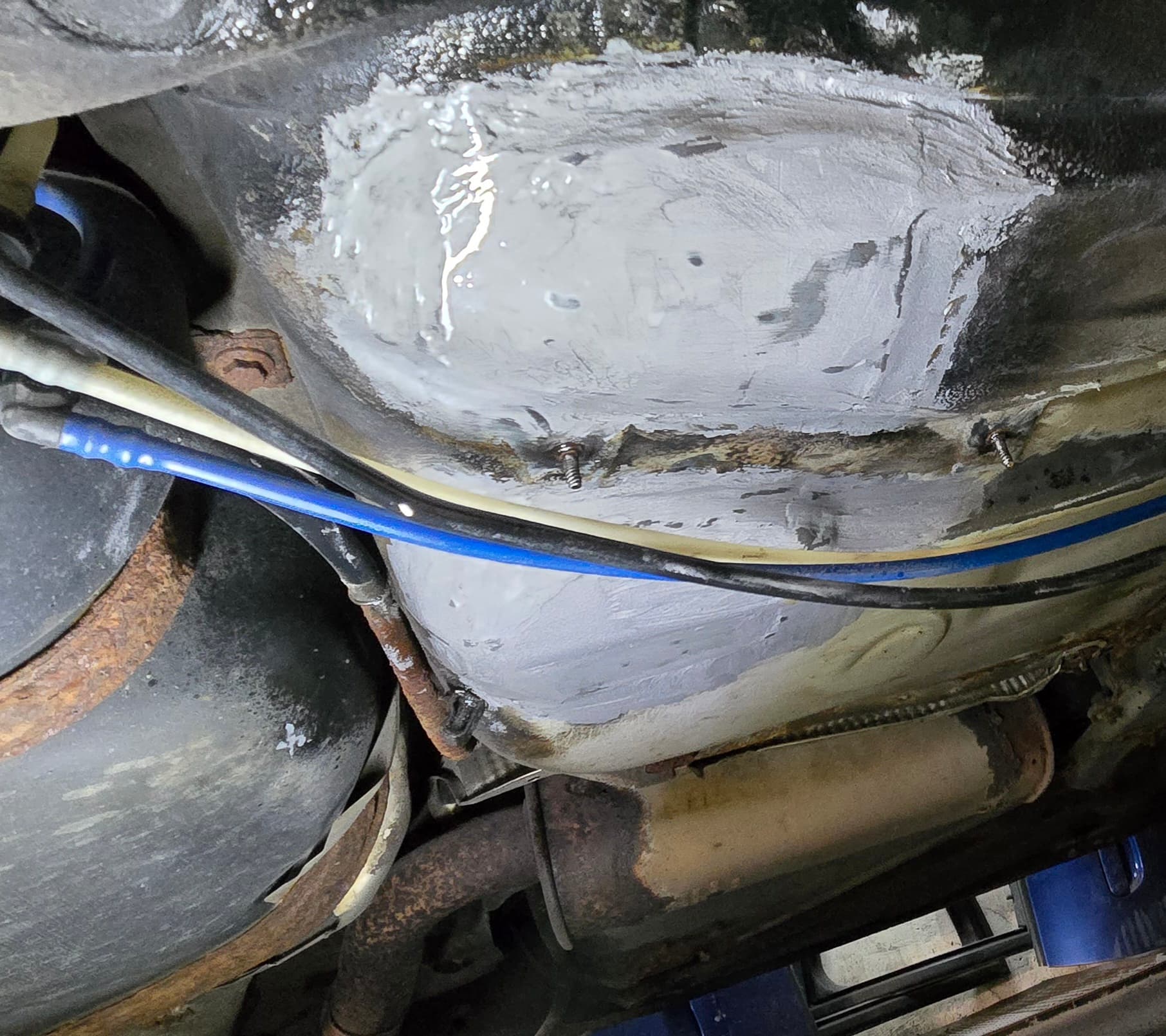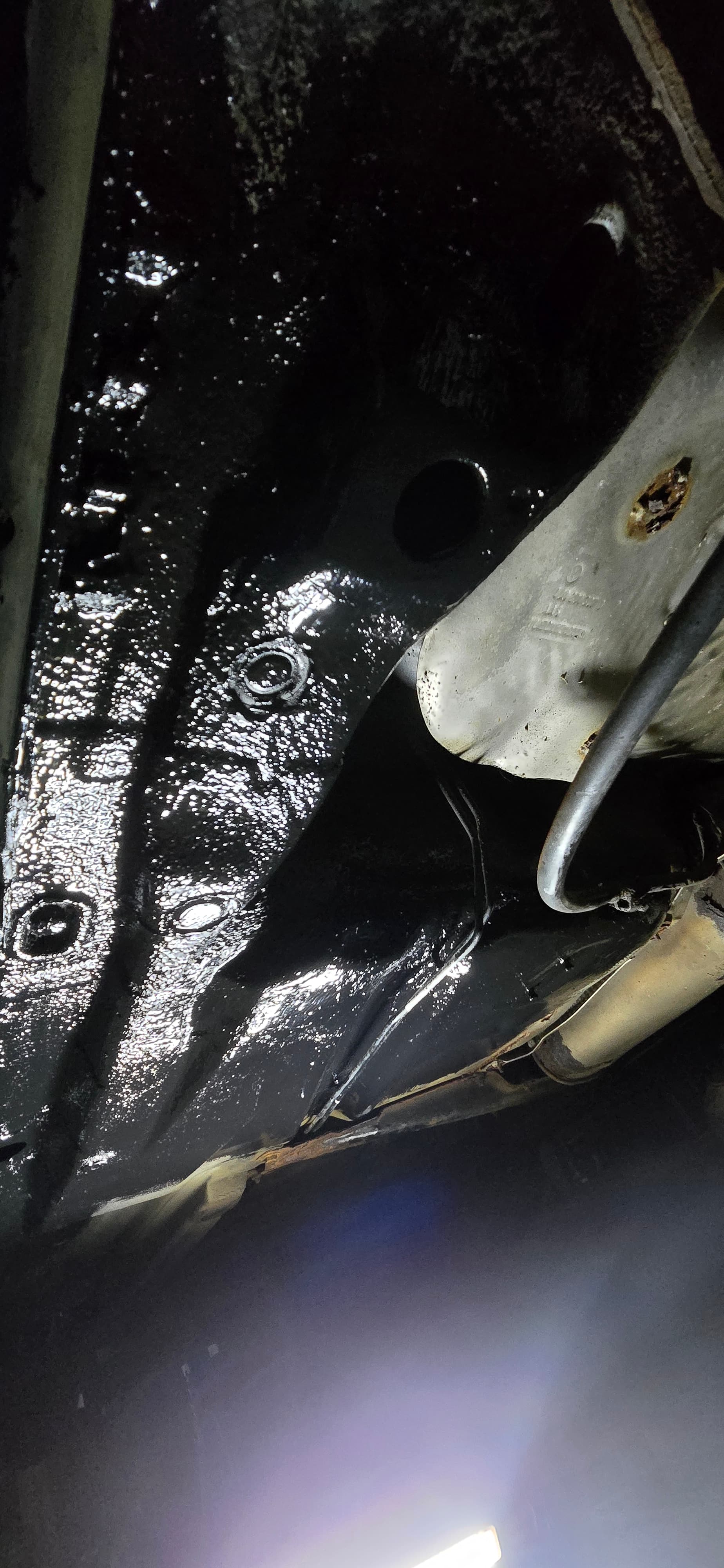 Der Unterboden wurde komplett (bis jetzt) von Rostlöchern befreit und stellenweise schon mit Owatrol und Brantho 3in1 behandelt.