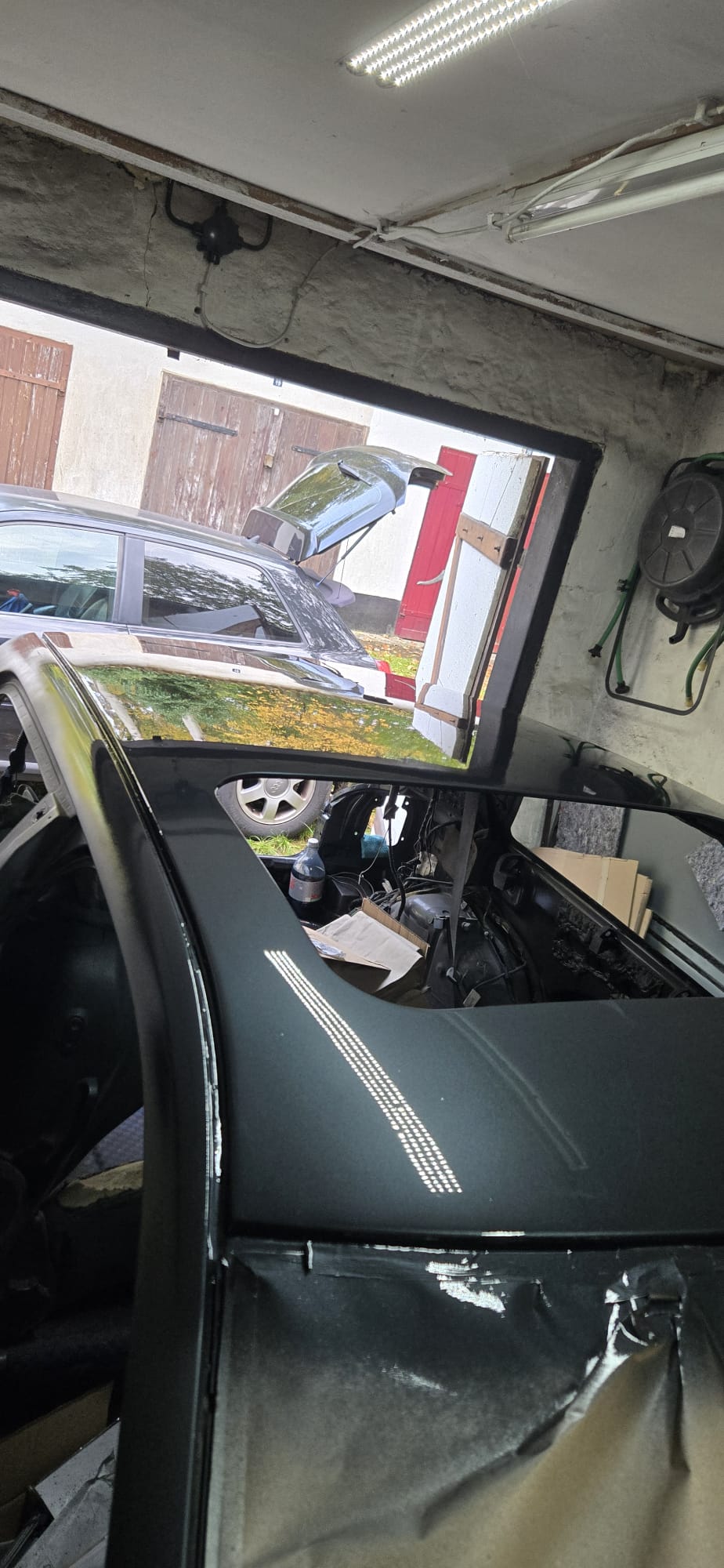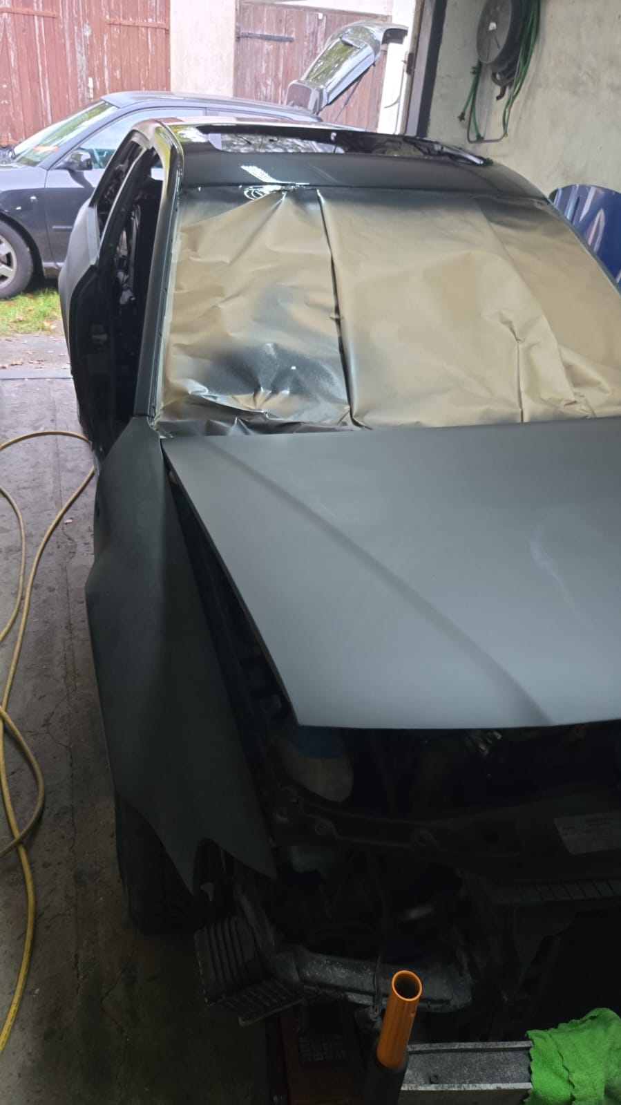 Bin aber guter Dinge, das nachdem es ausgehärtet ist abgeschliffen und poliert werden kann! Es muss dann jetzt nur noch die Fahrerseite, beide Kotis, Schwellerverkleidung und die Heckklappe lackiert werden!