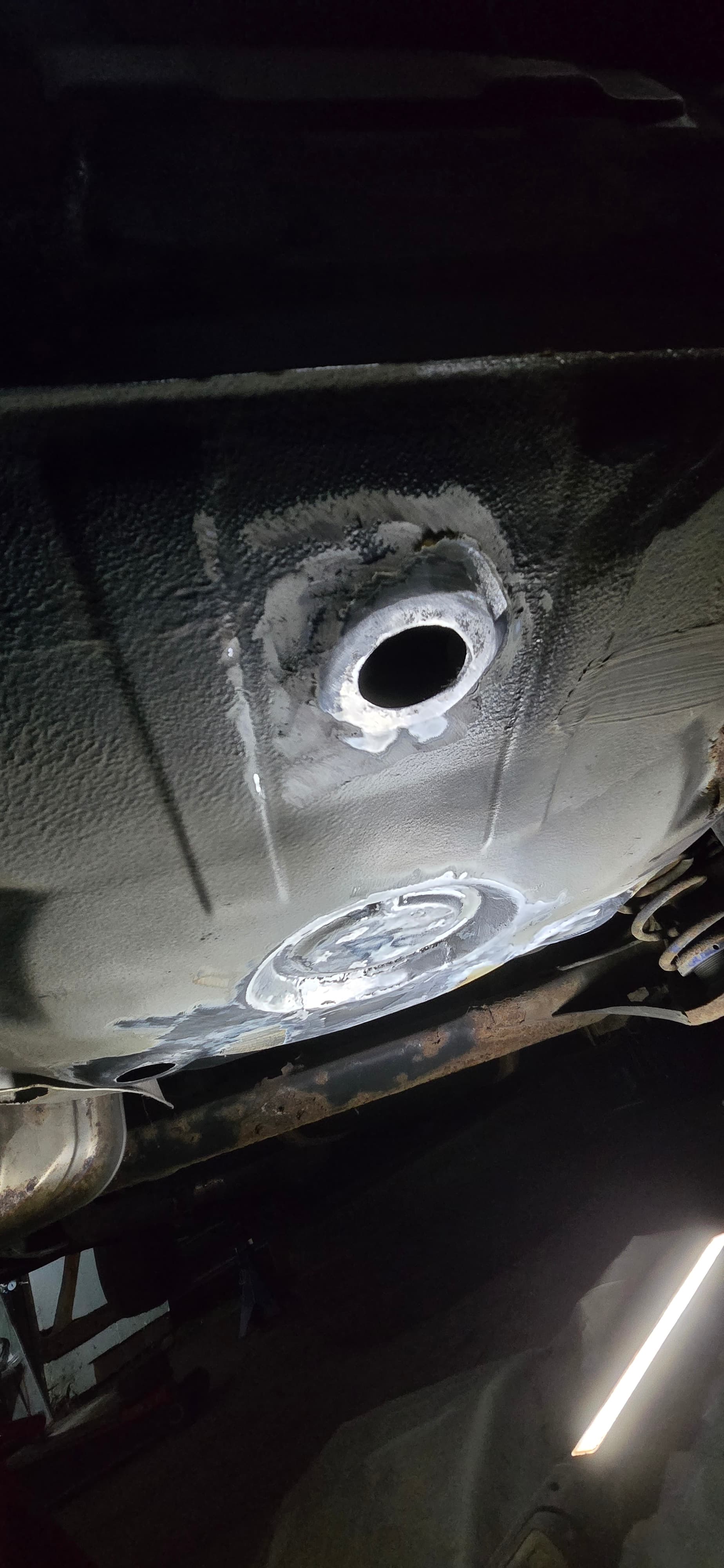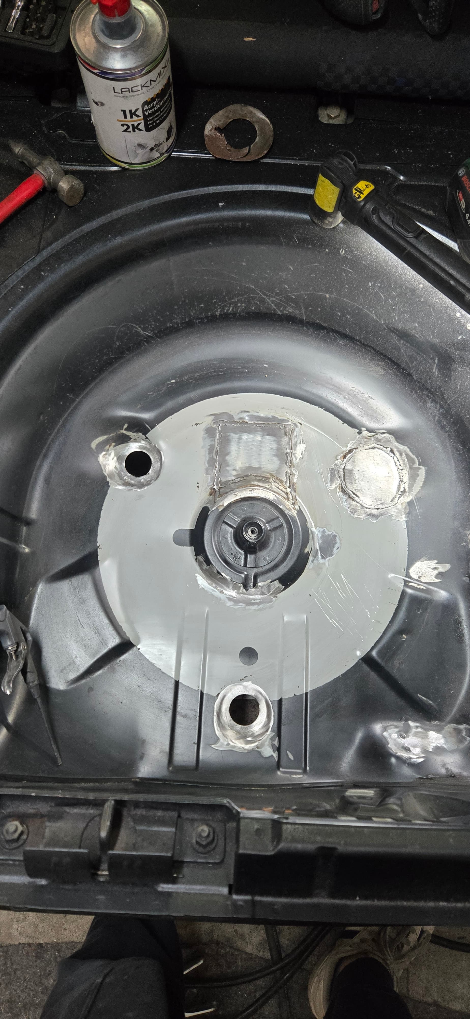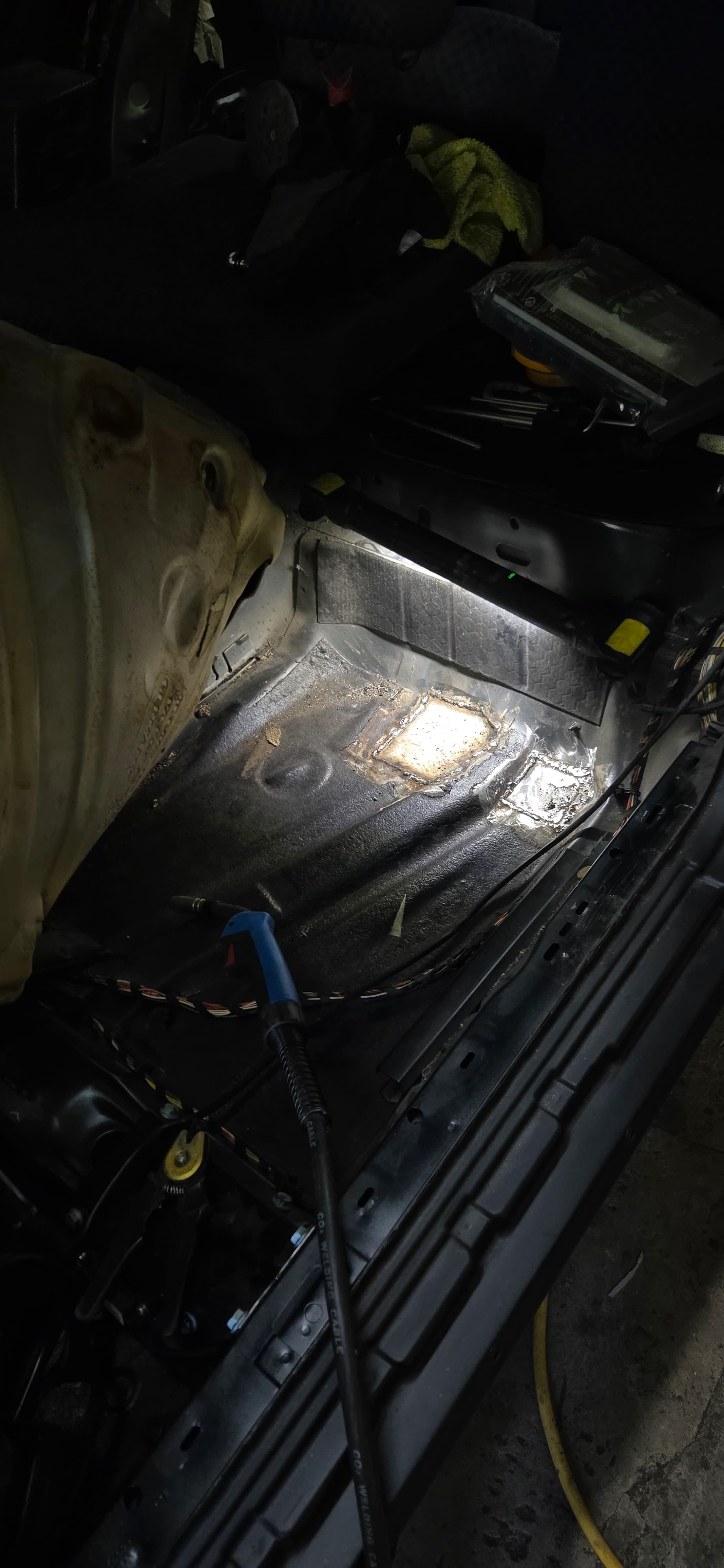 Die beiden Löcher unter dem Fahrersitz waren echt eine Herausforderung, weil beim Schweißen das Loch immer größer geworden ist. ![]()