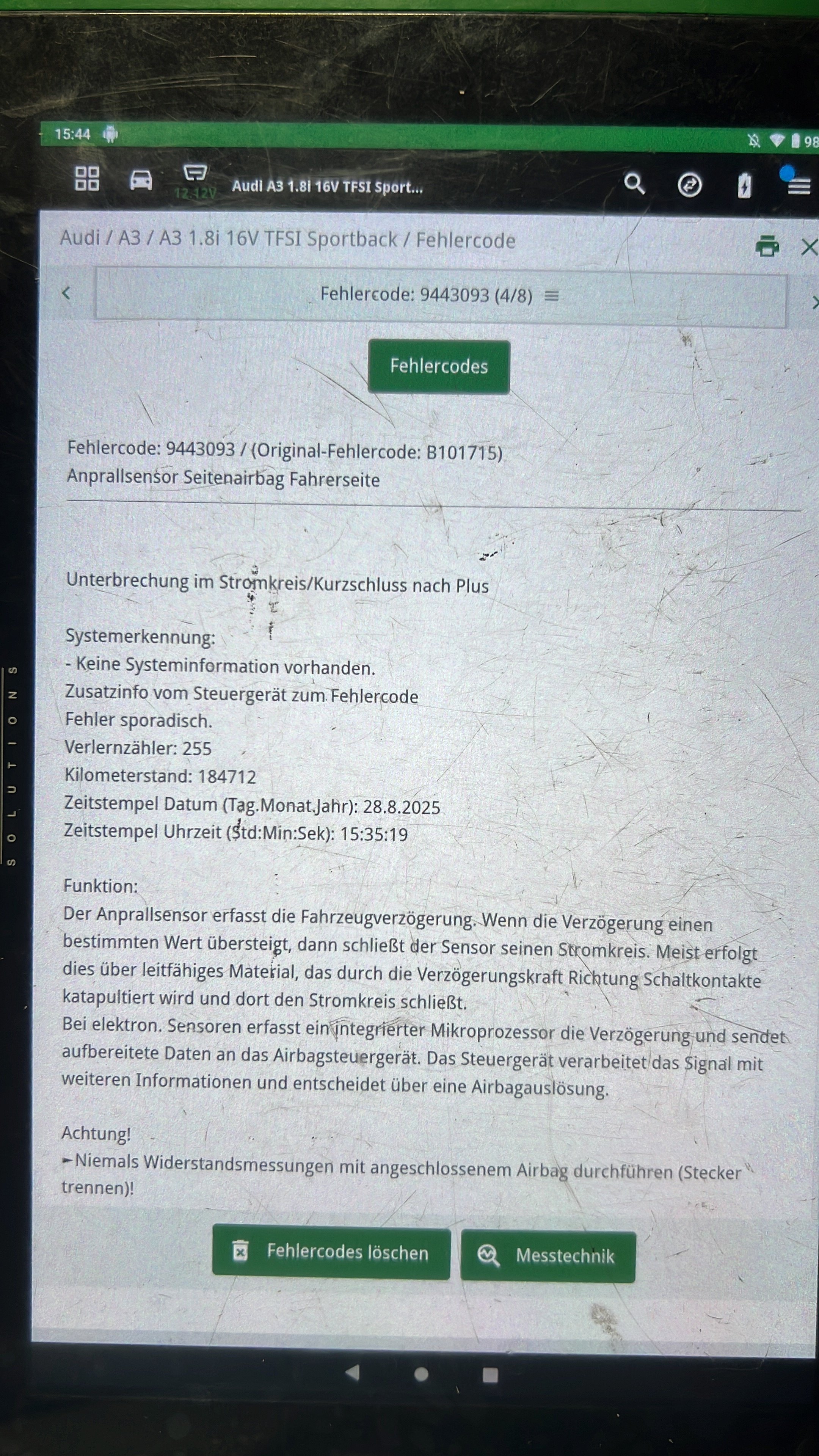 Da ich natürlich dies nicht fachgerecht gemacht habe, hat erstmal die Elektronik etwas gespinnt und die Airbag Lampe leuchte ist angesprungen.