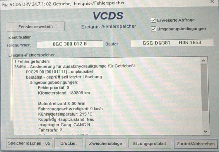 Habe den Fehler mit VCDS ausgelesen. Siehe Bild.