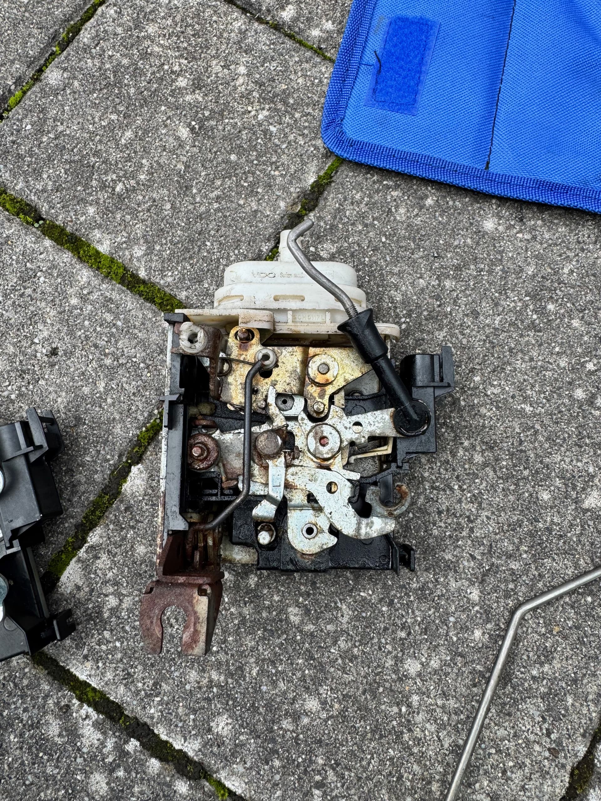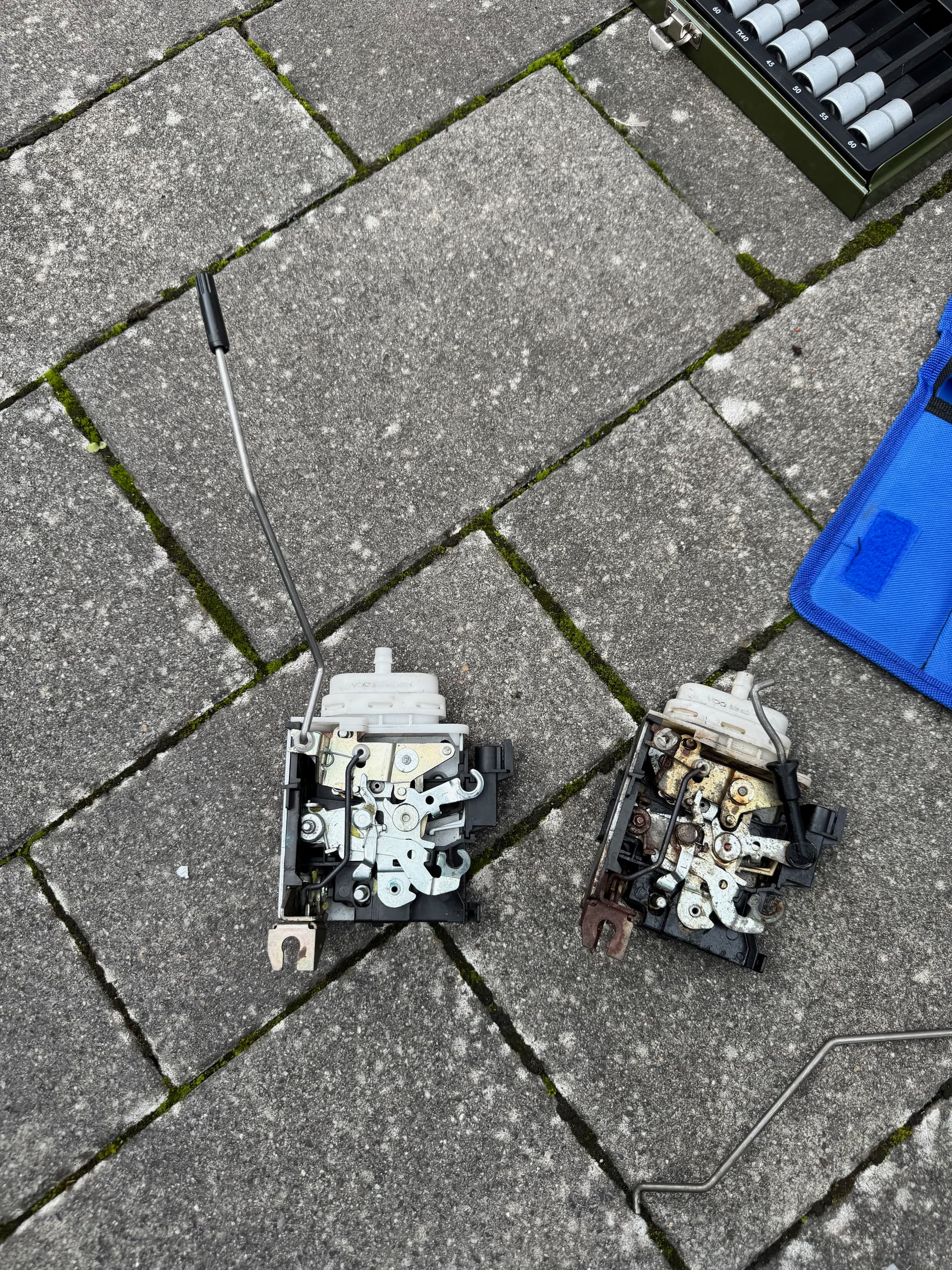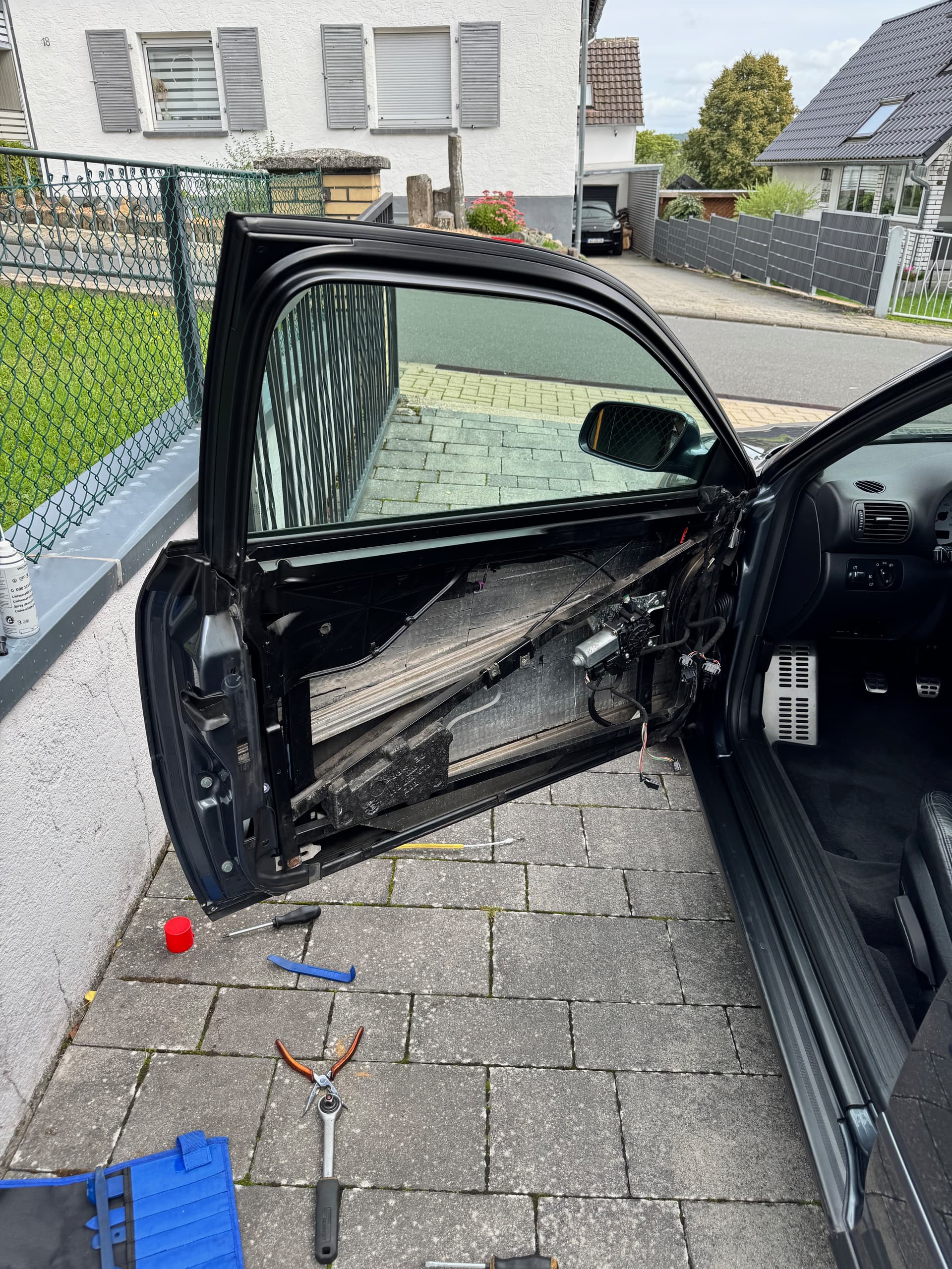 Und heute das 2. Projekt für diesen Urlaub erledigt. Da meine Fahrertür immer mal nicht zu geht, oder einfach während der Fahrt in die erste Raste aufgeht (meistens begleitet von einem kleinen Herzinfarkt meinerseits ) habe ich schon länger ein gut gebrauchtes, neuwertiges Schloss hier liegen, welches ich aber nie einbauen wollte weil eigentlich der Fensterrahmen dafür raus muss.