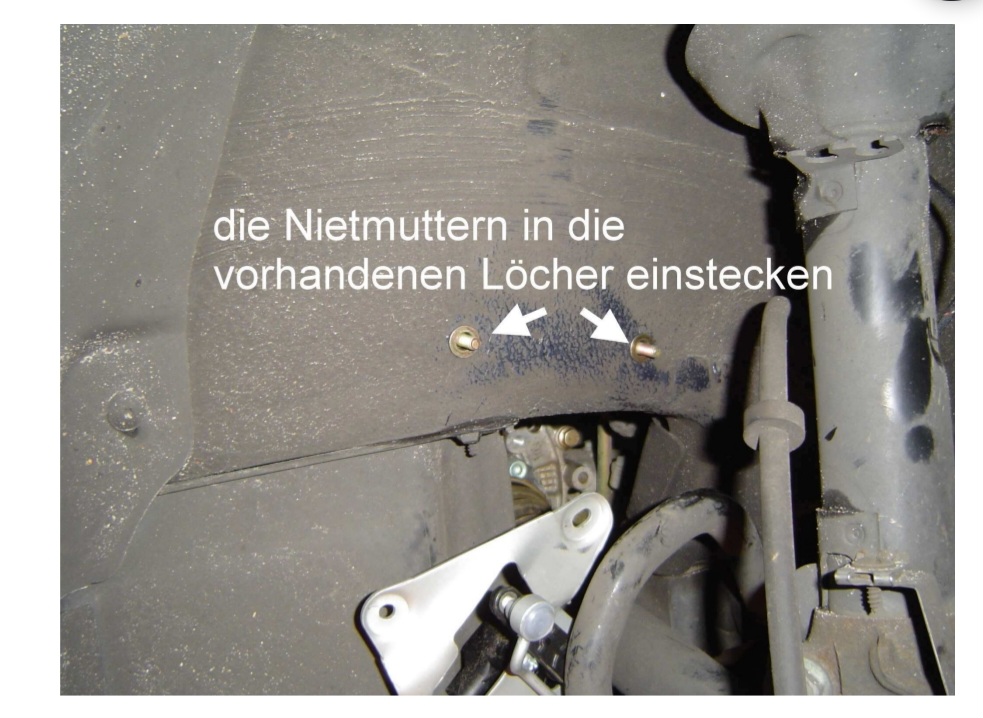 Die für die Aufnahme der Nieten benötigten Öffnungen im Radhaus waren bei meinem 1999er (ohne werksseitiger ALWR) schon ab Werk vorhanden. Wenn man in dem Bereich erst mal alles gründlich gereinigt hat sollte deren Position unterhalb der Unterbodenbeschichtung erkennbar werden. Ohne werksseitiger ALWR wurden die entsprechenden Öffnungen jeweils mit einem quadratischen Aufkleber verschlossen. Hoffe ich konnte dir irgendwie helfen…